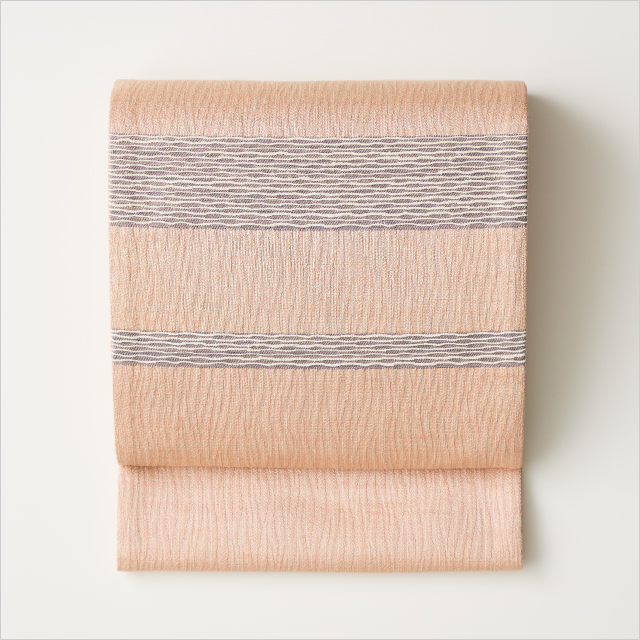 山に自生する藤のつるから昔ながらの技法でつくる“藤布”と、絹織物を融合させた〈遊絲舎〉ならではの帯。風合いがよく、軽さと結びやすさが特徴です。