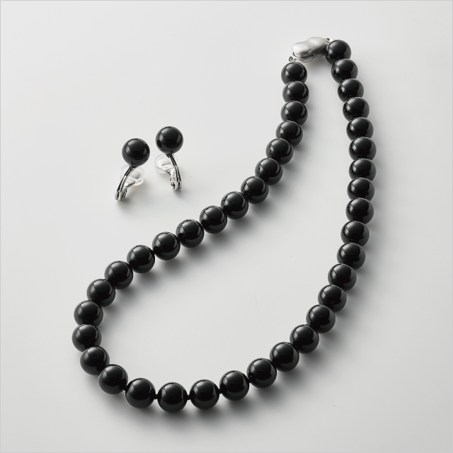 ジェットネックレス・イヤリングセット(ネックレス:久慈産ジェット9mm珠/長さ約40cm、イヤリング:久慈産ジェット9mm珠/金具:いずれも銀メッキ) 50,600円〈5セット限り〉