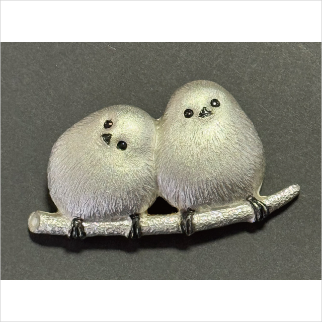近年様々なファッション雑貨に使われている“しまえなが”モチーフ。二羽が寄り添うブローチは、心も和む微笑ましいデザインです。