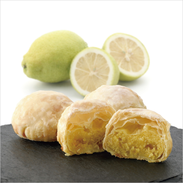 京都府産の京檸檬の果汁を使って酸味をきかせた生地を、サクサク食感のパイ生地で包み焼き上げました。バターの芳醇な香りとレモンのさわやかな酸味が初夏にぴったりのスウィーツです。