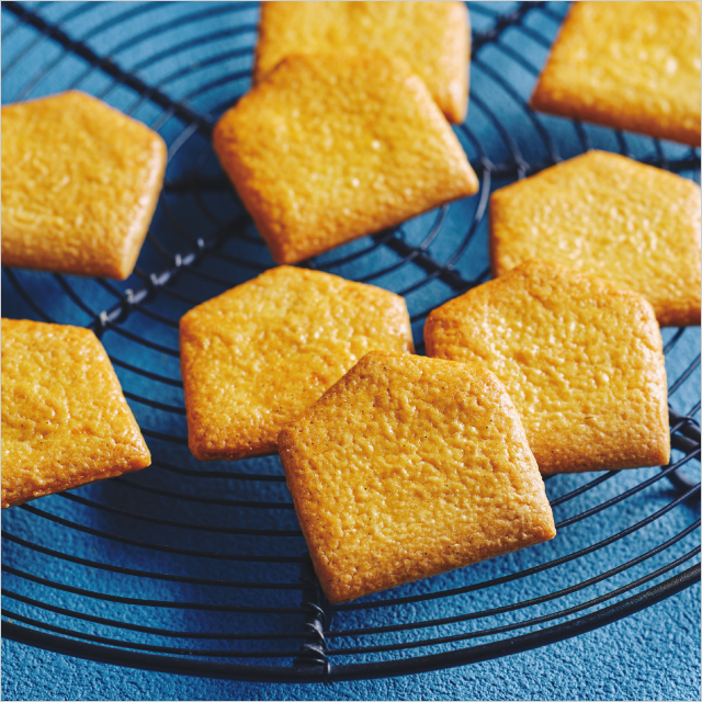 発酵バターを使用した、ほろほろとほどけるやさしい口溶けのクッキーを、焼きたてでご用意。繊細な味わいと、焼きたてならではの香りをお楽しみください。