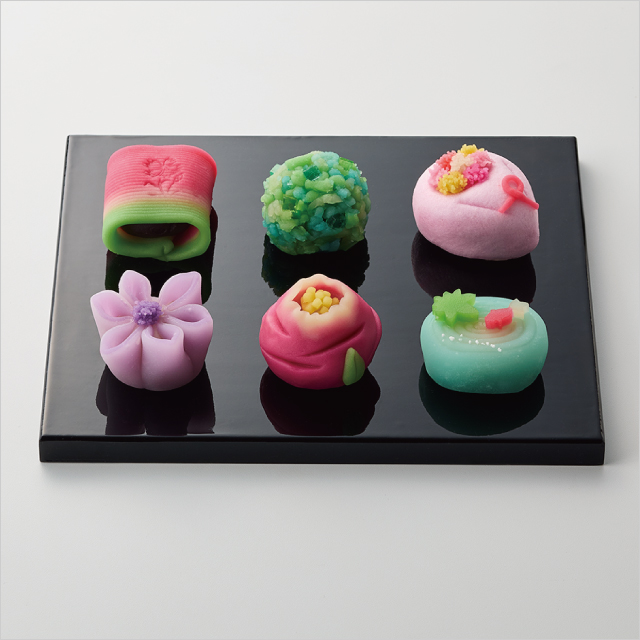 季節を表現した彩り豊かな上生菓子。ほかにも甘夏やパイナップル、赤肉メロン、青梅の4種の味わいを重ねた細工羊羹「京彩果-フルーツロワイヤル-」や小豆の上品な甘さを生かした「冷やしぜんざい」など、涼やかで気品ある京菓子が揃います。