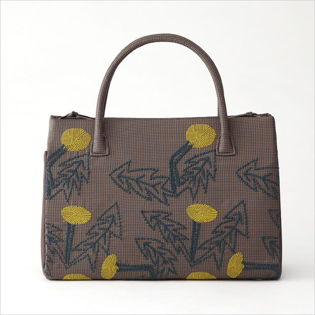 染織家・志村 ふくみ氏の孫である志村 昌司氏を中心とした、次世代のつくり手たちによる染織ブランド。〈ミナ ペルホネン〉とのコラボレーション企画で生まれた自由気ままに咲くタンポポの刺しゅうが愛らしい、和装洋装どちらにも活躍する利休バッグをご紹介します。