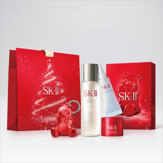 ベストセラーの「ピテラ(TM)エッセンス」、新発売の薬用美白(*2)美容液「SK-II ジェノプティクス インフィニットオーラ エッセンス〈医薬部外品〉(販売名:SK-II薬用美容液ST)」、2025年9月に生まれ変わった美容クリームが手軽に試せる、15の美容効果を持つ一箱。ホリデー仕様のデザインボックスとチャームがついた2025年限定トライアルキットです。