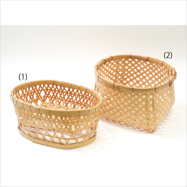竹を使った波ぶちかごを編むワークショップです。このほか「花かご編み」(約30分)ワークショップも開催します。