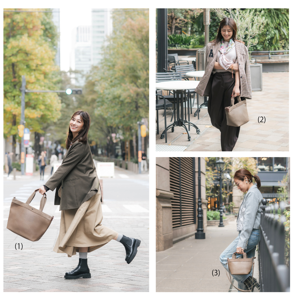 ファッション誌の最新号で好評だった新色トープのラージサイズを先行販売します。