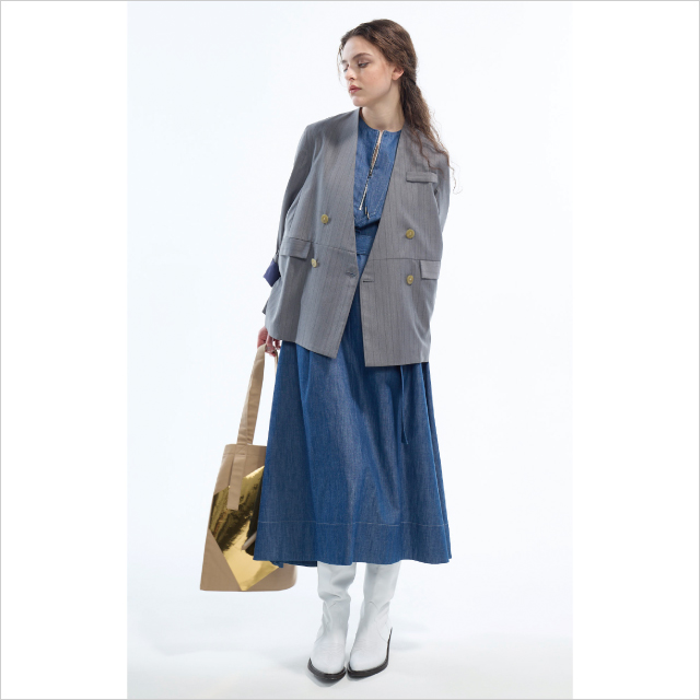ブランド名は、触知できることを意味する“tactile”に由来。配色の裏地がアクセントのジャケットや、裾が広がるフレアシルエットのデニムワンピース、ホログラムをあしらったバッグなど、五感に響くテキスタイルにこだわる〈タクター〉らしいアイテムが揃います。