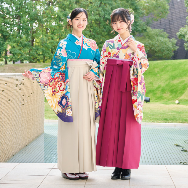 大学の卒業式におすすめの、きものと袴を多数ラインアップ。卒業式当日の着付けから記念撮影までセットになったお得なプランのほか、きものをお持ちの方向けのプランもご用意しています。