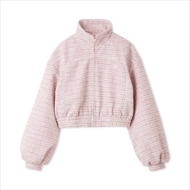 スポーツテイストのトラックブルゾンは、この冬大活躍のアイテム。ツイードカットソー素材で、キレイめな見え感とリラックスできる着心地を両立させました。ミニスカートやチュールスカートと合わせれば甘めコーデが完成します。