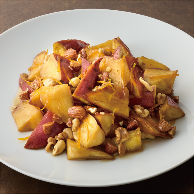 さつまいもは紅はるかを使用し、酸味のあるオレンジと香ばしいナッツがアクセントに。