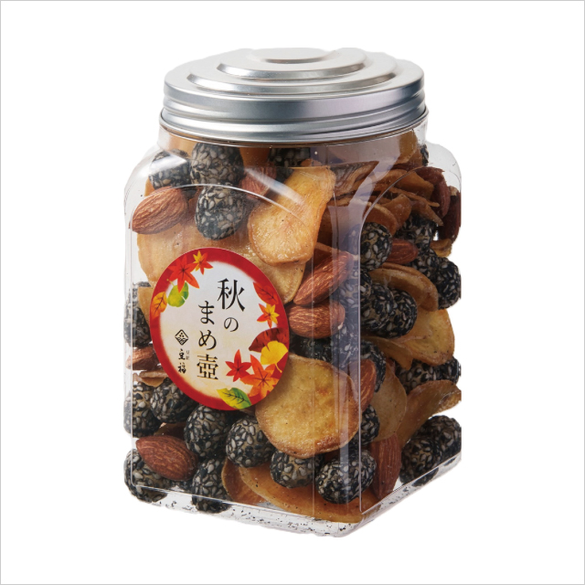 ヒヨクモチ玄米の生地の「黒ごま玄米だいず」、香りと食感が楽しい「直火の素焼きアーモンド」、素揚げしたサツマイモに蜜を絡めた「芋ちっぷ」。秋の3種の取り合わせです。