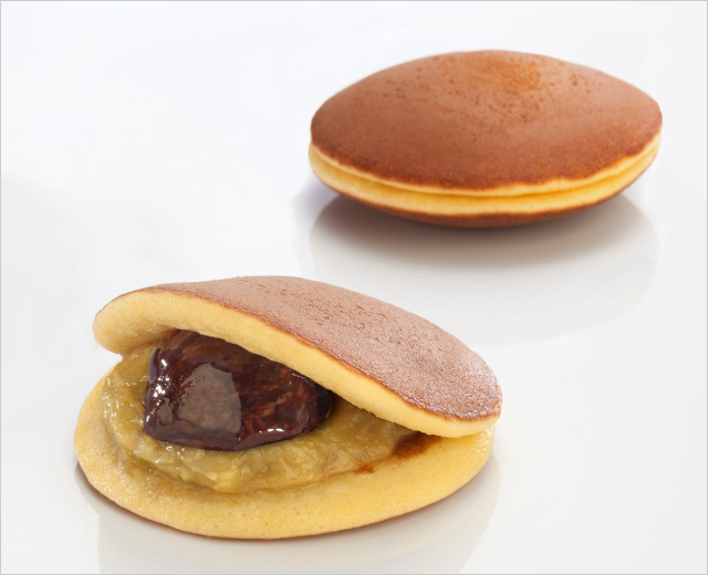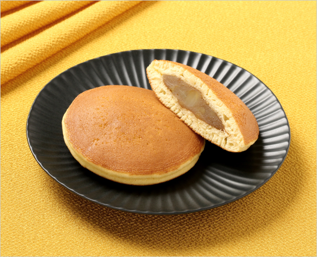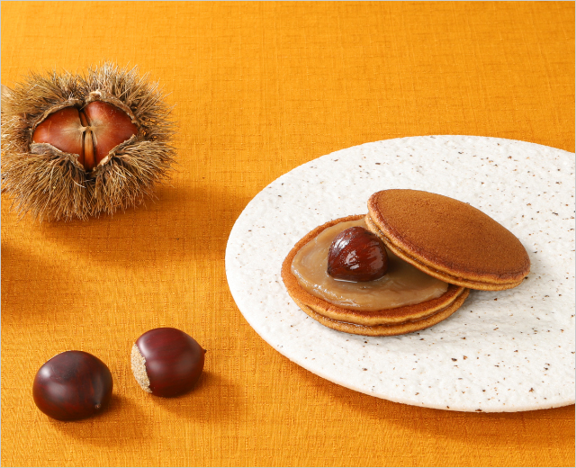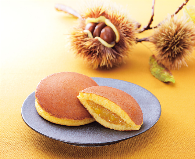 細かく刻んだ栗の甘露煮を入れた風味豊かな栗餡をふんわりやわらかな生地で包んだどら焼きです。