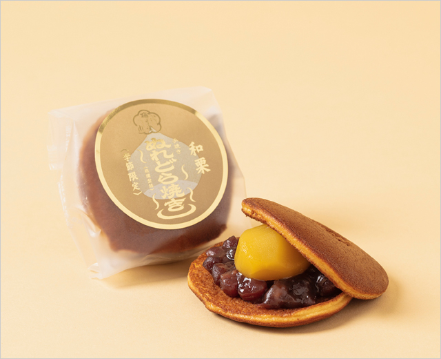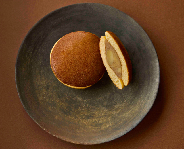 生地へのこだわりとして北海道産100%小麦を使用。適度な弾力としっとりさ、滑らかな口当たりを実現し、和素材ととても相性抜群。餡の約半分に栗を使用した非常に贅沢な栗あんのどら焼きとなっております。