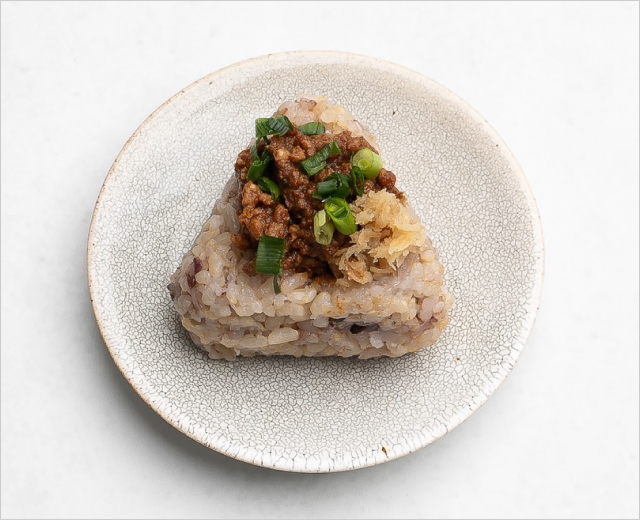 “小さなおにぎりに大きな栄養を込めて”管理栄養士が監修の〈一汁おにぎり「ニギ」〉。「ごろっと肉味噌おにぎり」は肉味噌×生姜×ねぎ。甘みのある濃厚肉味噌に薬味が加わった年中食欲がそそる組み合わせです。