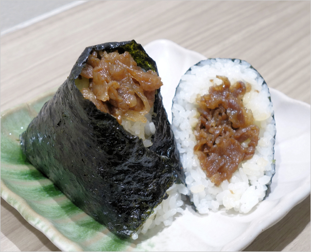 “こだわりは愛情”おにぎりを通して笑顔を提供する〈おにぎりの布袋〉。「和牛すき焼きおにぎり」はお肉がぎっしり。肉の甘み、やわらかくほどけるお米が相性抜群!自然と頬をゆるませる味わいです。