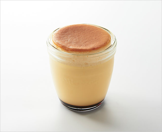 カスタードプリンと、ふわっととろけるなめらかなチーズケーキを組み合わせたガラス入りのスウィーツ。食べ進めていくほどにプリンとチーズケーキが絡み合い、ほろ苦いカラメルソースがアクセントに。