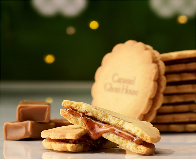 紅茶葉をくわえ丁寧に炊き上げた品のよいキャラメルを、ほのかな塩味とバター香るクッキーでサンドしました。クッキーのホロっとした食感と共に広がる、キャラメルの人肌でほどける優しい甘さをお楽しみください。