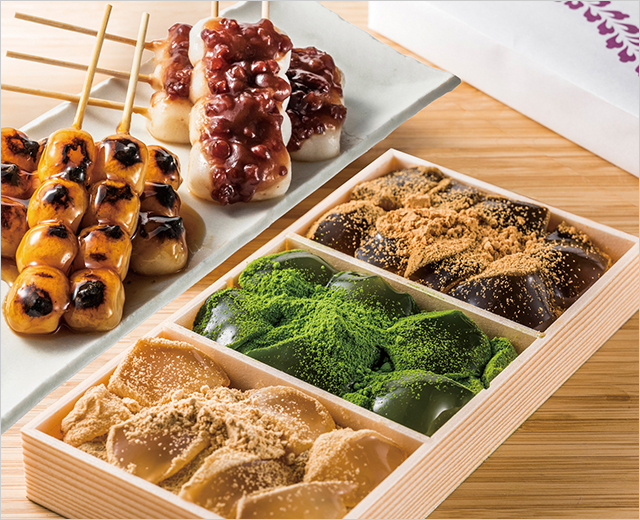 焼きが香ばしい秘伝のタレのみたらしと、小豆たっぷりのぜんざいだんごの詰合せです。