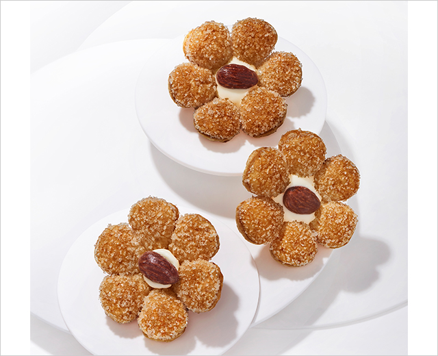 フランス産発酵バターの香りがしっかりと花開くように、4,000層以上も重ねた生地の一枚一枚にバターを折り込み、じっくり香ばしく焼き上げたパイ菓子。サクサクと軽やかにほどけ口いっぱいにバターが薫ります。