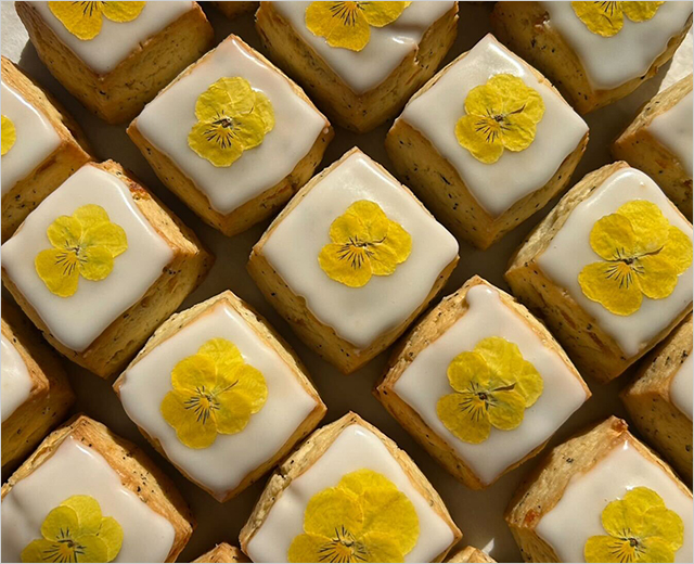 香り高いダージリン茶葉と国産農薬不使用オレンジを使用したオレンジピールを練り込み、爽やかなレモンのアイシングとエディブルフラワーで仕上げました。見た目も華やかな春の一品をお楽しみください。