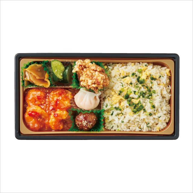 一番人気の海老チリをメインに、少量のおかずが入った中華弁当です。