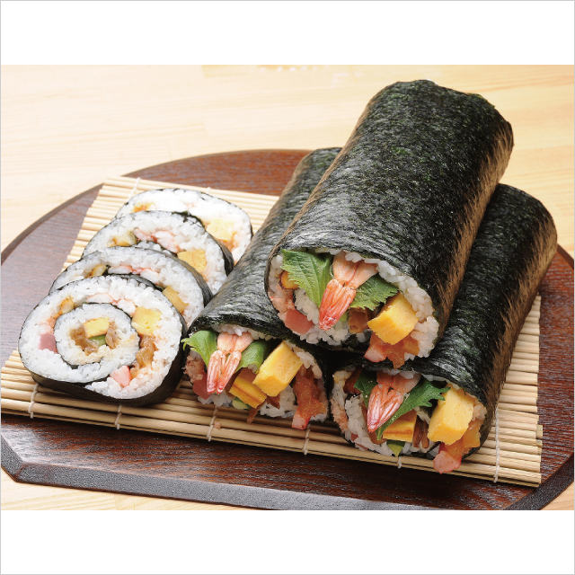 〈浪花古市庵〉名物の「うず潮巻」は、12種類の具が入った彩り豊かな巻きずし。ボリューム満点です。