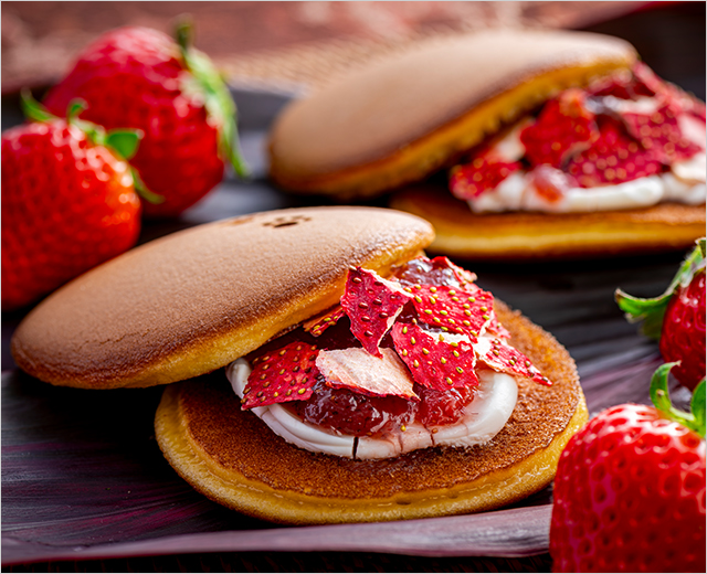 師匠から受け継いだどらやきの生地をベースに、九州産のクリームチーズと熊本県産のいちごのドライフルーツを使用した、爽やかで甘酸っぱいどらやきです。お口の中が九州のおいしいもので満たされます。