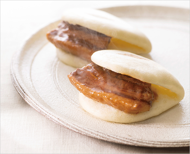 うま味調味料を使わず、丹念に時間をかけて「だし」のうま味をしみこませ、その角煮をふわふわの生地に挟み込んでいます。