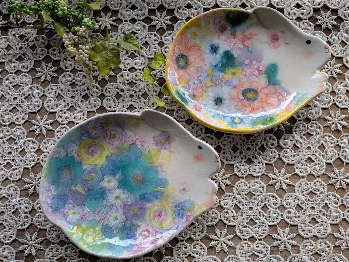 花うさぎ皿 (約22×17×高さ1cm)各 5,830円