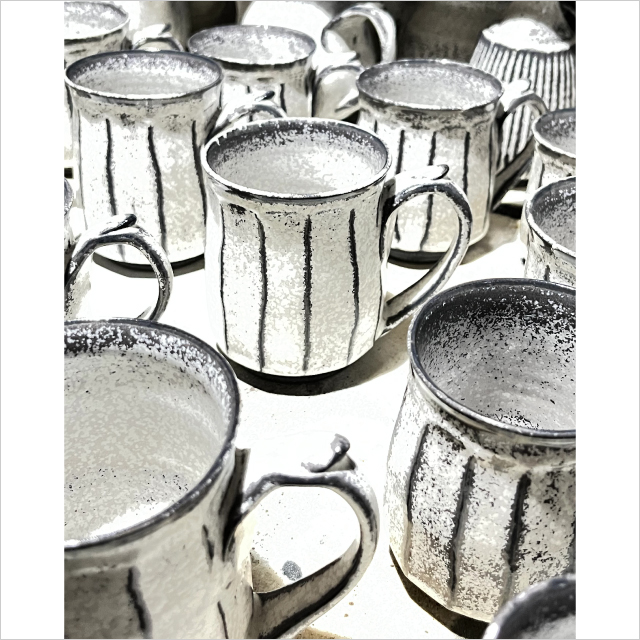 炭化白釉面マグカップ(7.5×10×高さ8cm) 各6,600円