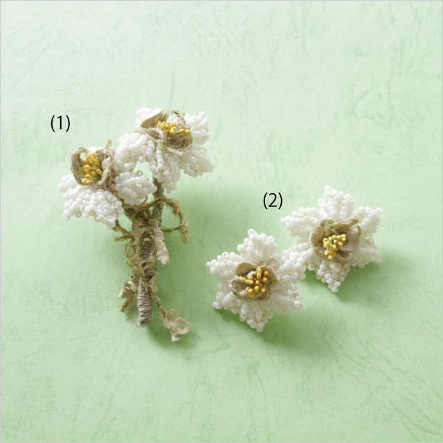 ※ご予約時に(1)ブローチ、(2)イヤリングまたはピアスのどちらかをお選びください。