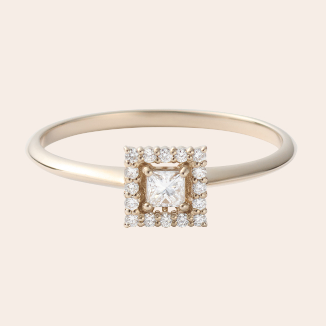 就像圍繞著凜冽的方形切工鑽石一樣,配有細膩的鑽石的設計,雖然有著不會厭倦的簡單性,但卻展現出優雅和精致的魅力。