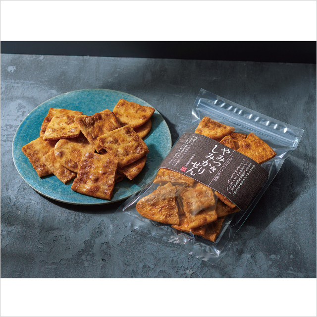 拘泥於100%使用國產米的仙貝專賣店。將剛烤好的煎餅硬要打碎,放入甜辣的醬油調味汁中醃製後,滲入的調味汁變成脆脆之前乾燥的口感成為癖好的煎餅。
