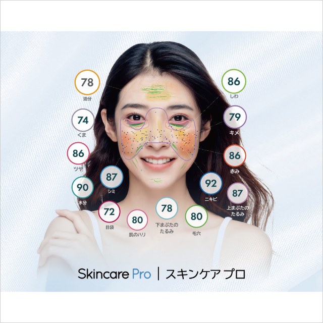 使用AI肌膚分析應用“護膚專家”詳細分析肌膚狀態。蜆貝、皺紋、kime等12個專案在10秒左右進行測定,結果報告也可以下載。另外,其他煩惱的物品也在會場展示。應該能找到合適的商品。
