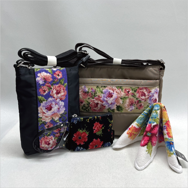 以可愛的設計和優雅的雪尼爾織為特徵的品牌。這是裝有手帕、化妝包、化妝包和挎包的實惠福袋。