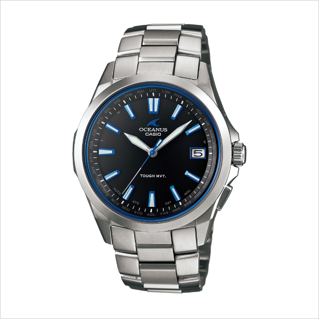 表盤采用運動黑色×藍色,“OCEANUS”藍色突出的設計。雙彎道藍寶石玻璃抑制了光的反射,並兼顧了美感和容易看性。盒子采用了優質加工的粗糙研磨。