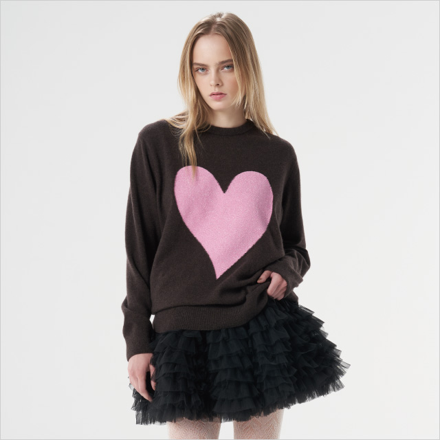 成為人氣造型師安西梢的標誌性針織衫,心形針織衫。前台是心形,後台是胸針的另一種設計,是用拉米線將心形編織而成的,是其他沒有的可愛。
