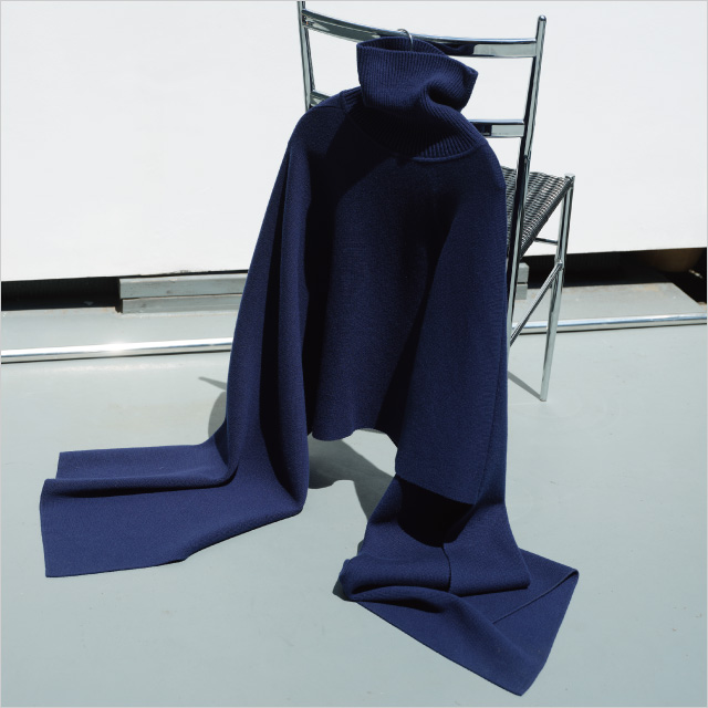 兼具現代感和優雅感的針織披肩。從100%的梅利諾羊毛素材中誕生的柔軟的手感,是一眼就能知道品質好的一張。薄的內衣自不必說,在外套上面也能分層,所以在秋冬的搭配中活躍著。