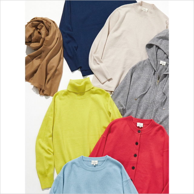 只使用在被認為是山羊絨最高峰的蒙古高原飼養的山羊毛。本季的“23區”將以豐富多彩的設計和色彩變化來介紹給日常生活增添豐富的卡西米亞。