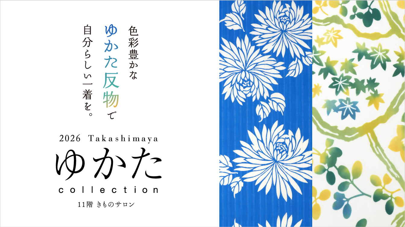 1842年創業,染紅的老字號“竺仙”。日本畫家宮內真理子的感性氣息以“葫蘆駒”為主題的浴衣,以及從注染的棉布質地染上箔圖案的浴衣,充滿了現代的魅力。